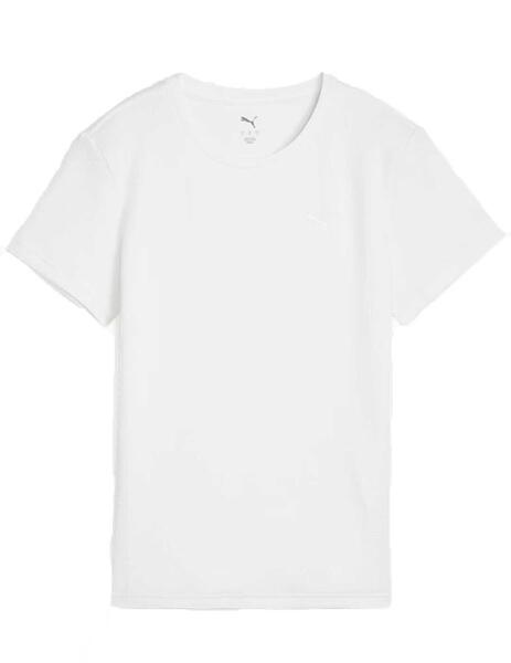 Camiseta Puma HER. Esta camiseta se ha confeccionado en tejido jacquard de doble cara y cuenta con cuello redondo y manga corta. Presenta corte estándar y largo estándar y luce detalles de la marca Puma.