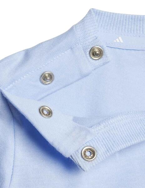 Conjunto Adidas Essentials. Este conjunto se ha confeccionado en suave tejido y lo componen una camiseta y un pantalón corto. La camiseta cuenta con cuello redondo y manga corta. El pantalón cuenta con cintura elástica. El conjunto presenta ajuste regular.